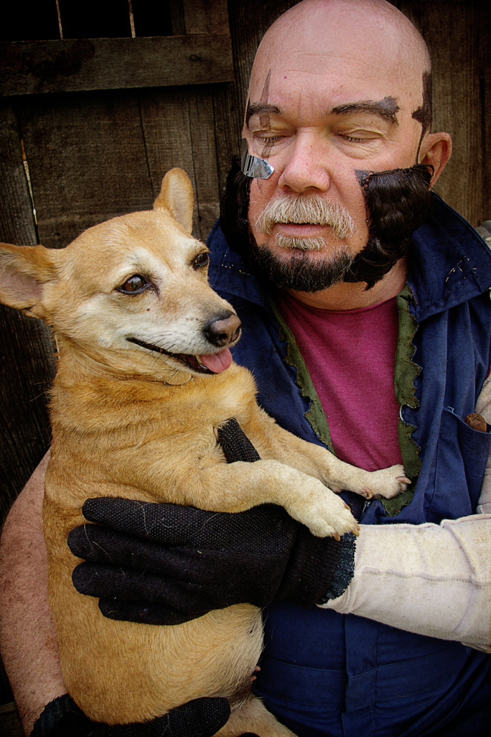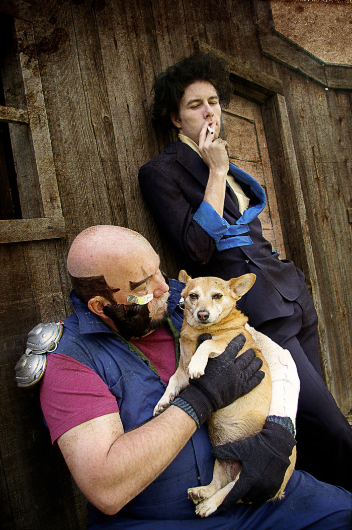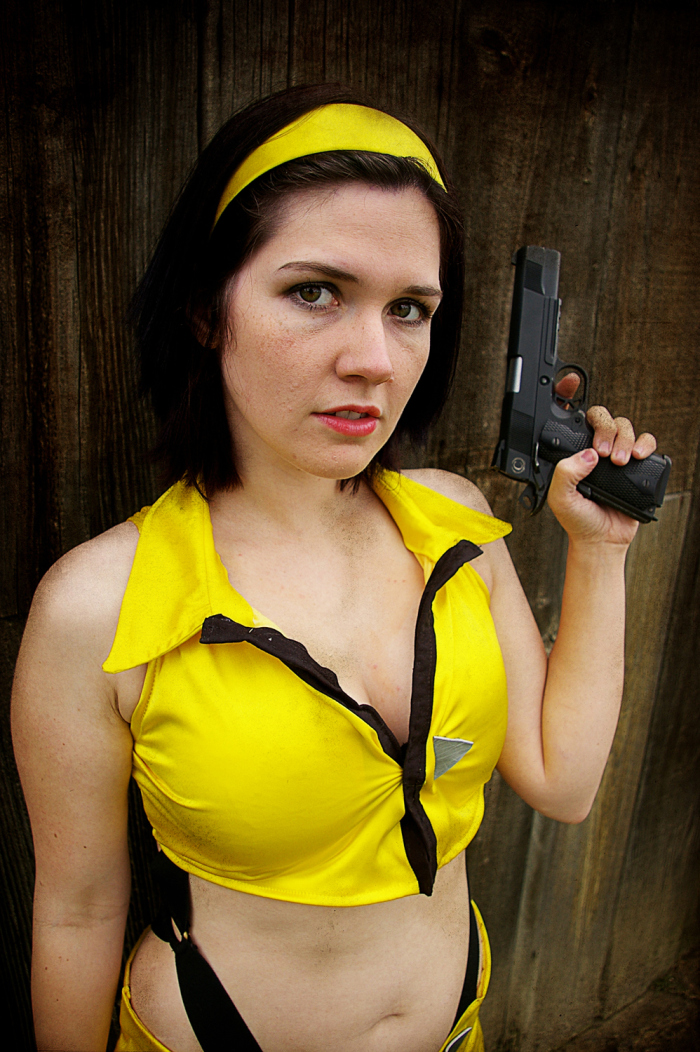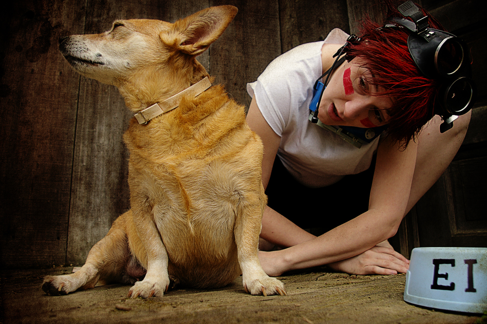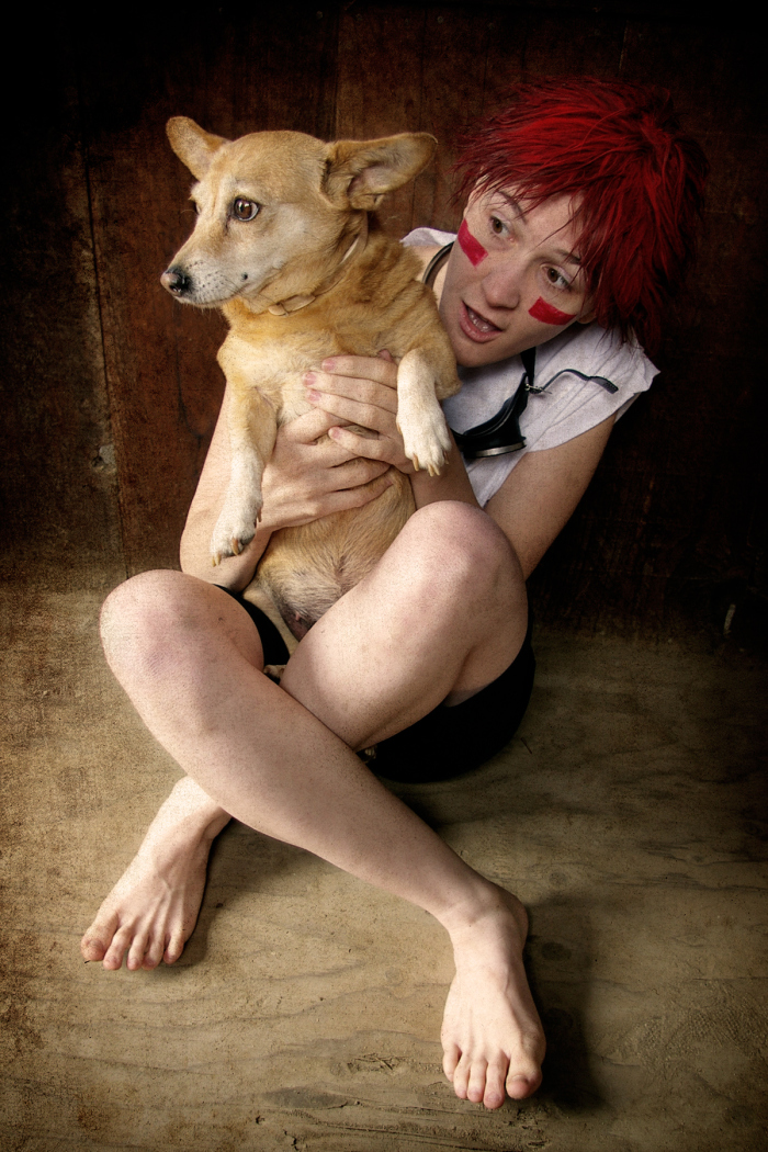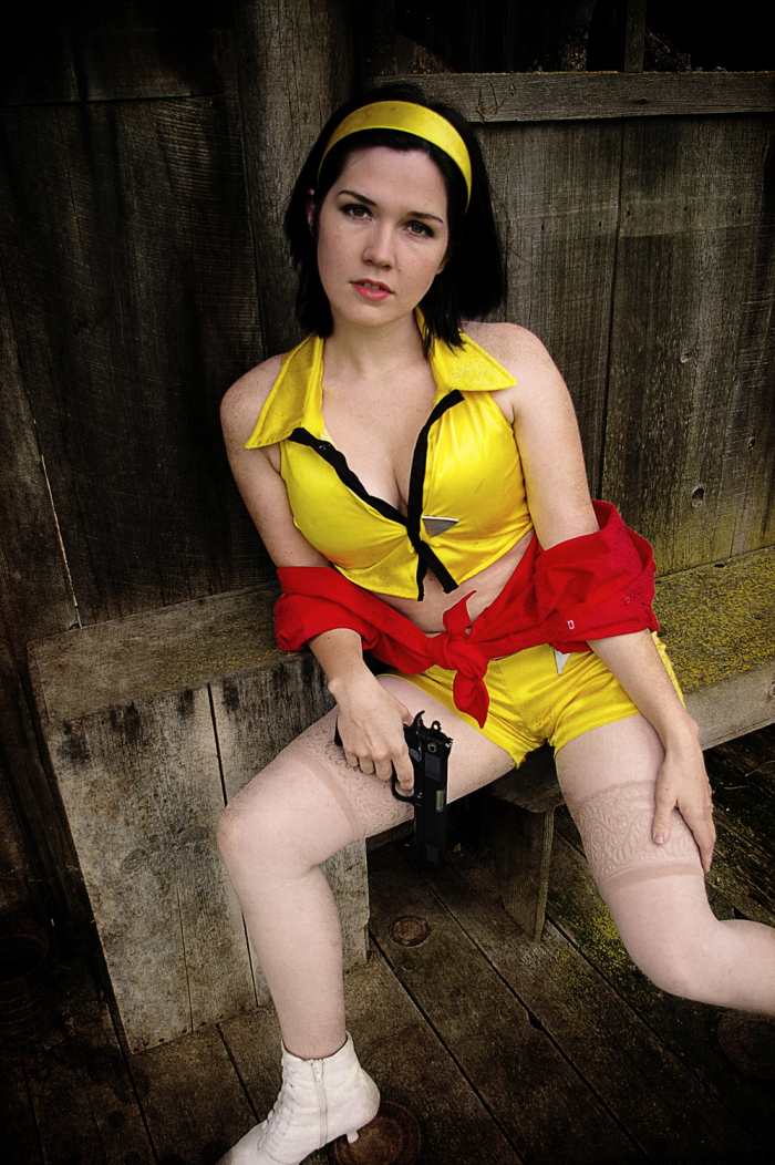In March of 2011 I was working at the Kings County Library and one of our regular anime-loving patrons returned some Cowboy Bebop DVDs. I was always showing the geeky patrons our cosplay photos, and when they asked if I’d done Bebop yet I said no, but we would eventually… especially since my parents dog Brandi would be a perfect little Ein. Then I started thinking.. Brandi isn’t as young as she used to be, and she’s got health problems. I have planned for YEARS to have her be our Ein… what if something should happen.. I’d be so sad that we waited. So I ran the idea by my parents, my sister, and my (at the time) fiance and they all said, “Let’s dooo eeeet!”…. or something to that effect. (About a year after this photoshoot, Brandi did pass away, as a very old, very happy puppy.)