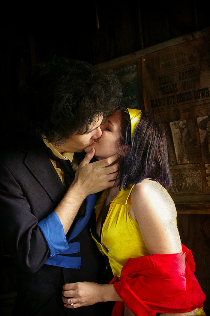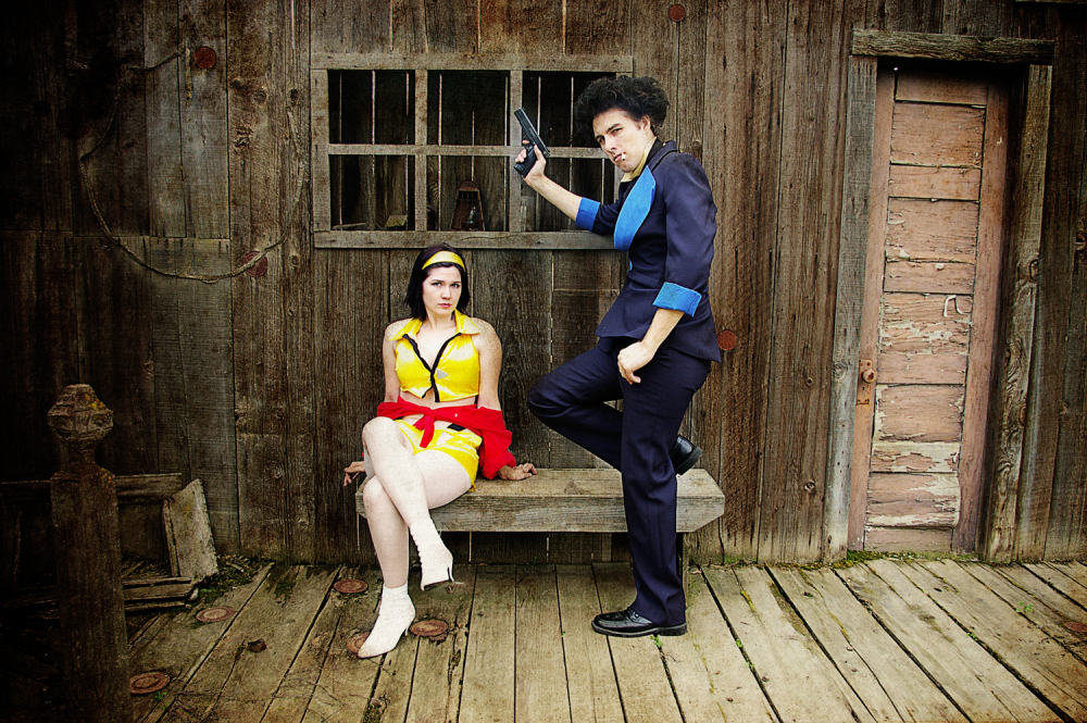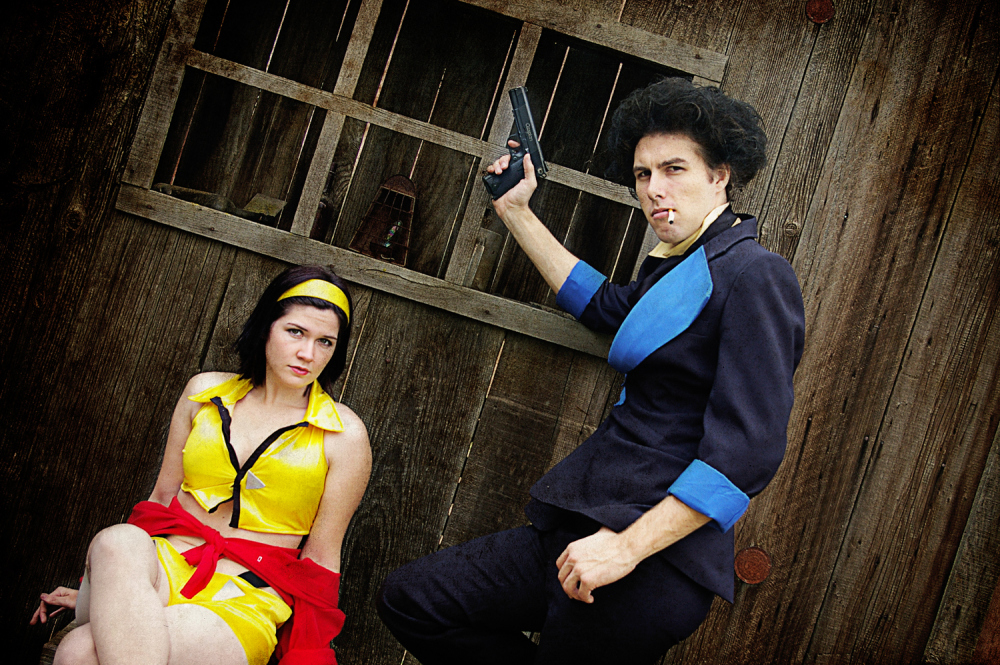 The location we shot at is actually a tiny Western town on someones private property in Hanford, CA. We asked for permission to shoot there and they said sure.. and when we arrived on the scheduled day, they came out to watch.. and it turns out one of the guys is a HUGE Bebop fan! His wife even came out wearing a Cowboy Bebop t-shirt! It was a super fun day!