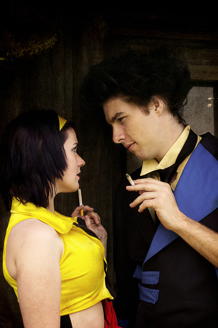 This was at the point in our cosplay journey where Jonathan and I were in full “do it yourself” mode when it comes to our costumes, and while my mom helped me find some clothing pieces to take apart and use as templates to draft the Faye Valentine top / shorts, Jonathan and I sewed our costumes 100% ourselves.
