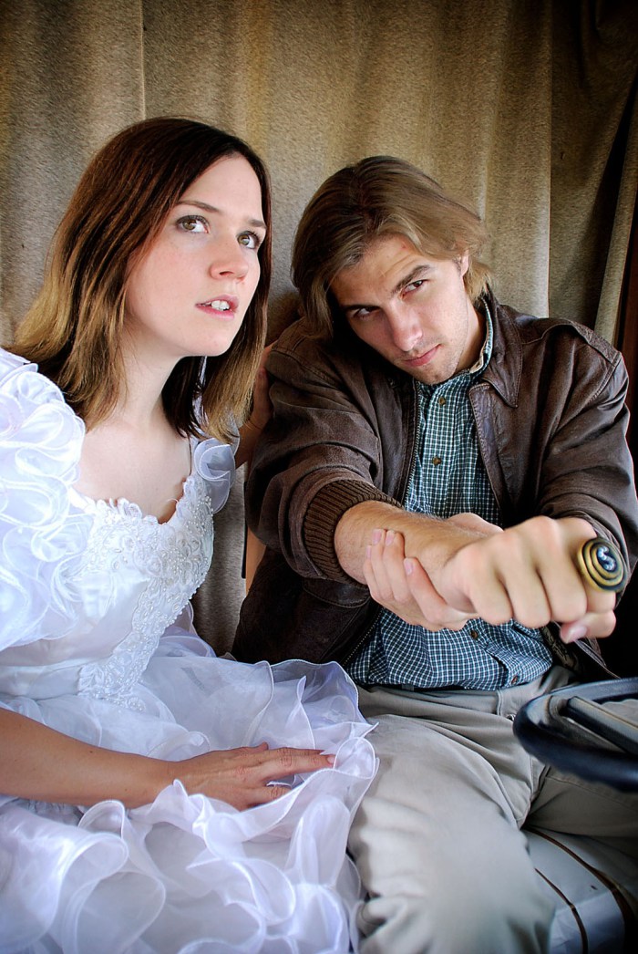 In the summer of 2011 my mom found this wedding dress at a yard sale for five dollars. We were giggling over how much it looked like Princess Vespa’s dress, and how easy it would be to do a Spaceballs cosplay… aaaand then we found the Lone Starr jacket at a thrift store. Our fate was sealed!