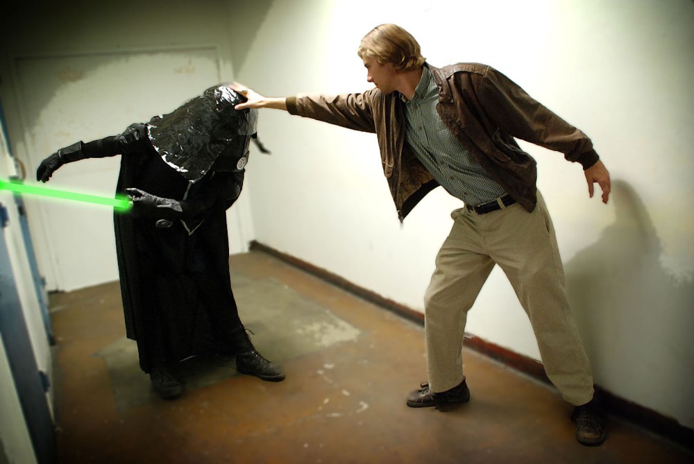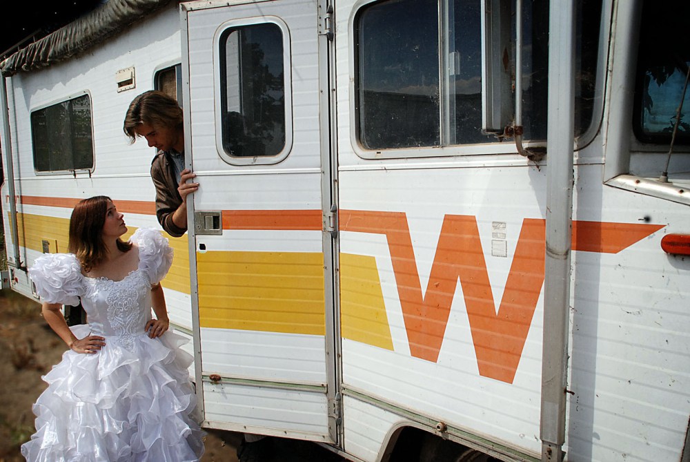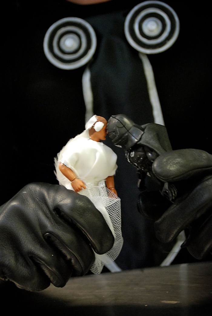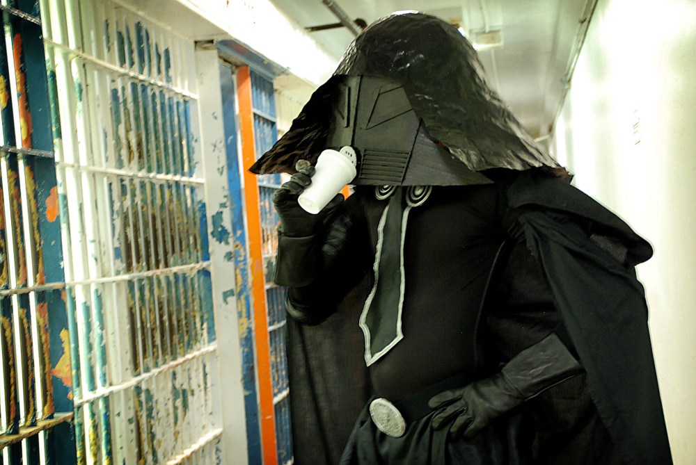 We found the Winnebago sitting in a field just outside of Hanford, and asked the owner if we could use it for the photoshoot. He was very cool about it, albeit very very confused. The inside Spaceballs / jail shots were taken at the old abandoned Kings County Jail in Hanford, California. I was Princess Vespa, Jonathan was Lone Starr and our friend Sean was Dark Helmet! ^_^