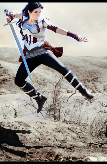 We took the photos in Kettleman Hills, California – the same place we took the Trigun photos. I think they turned out great, and I am super happy to be playing a warrior chick this time!! Not to mention… isn’t my husband a sexy beast?!?! ^_^