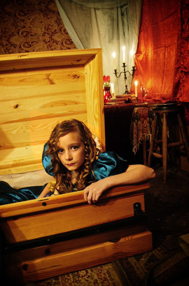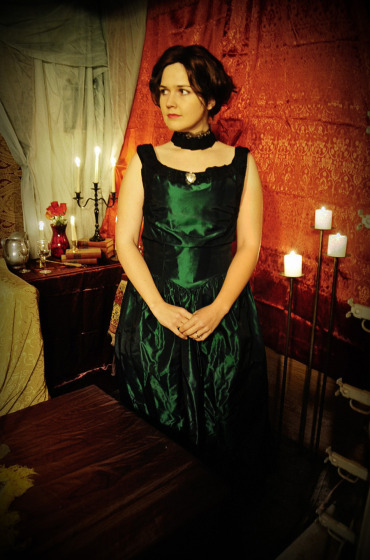 For the photoshoot itself, we borrowed a room in the basement of the Kings County Morgue in my hometown of Hanford, California (the building is partially abandoned) and we were able to borrow a coffin for some shots. Everyone pooled in resources for the props, lighting and set dressing. This was the best shoot we’ve done coordination-wise so far. It was sooooo much fun!!