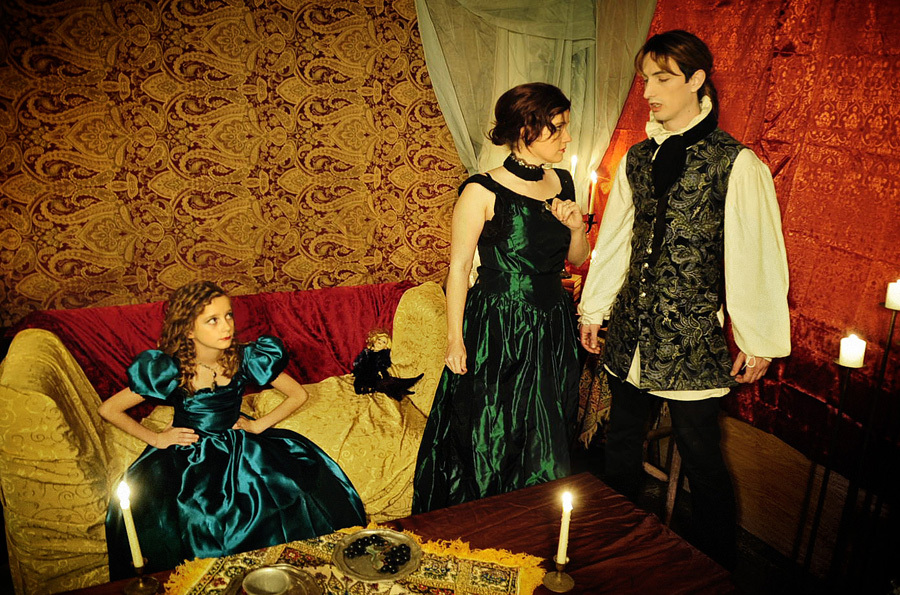 Our roommate at the time, Sean (he’s in tons of our other cosplay shoots) was Louis, our friend Kim’s daughter Emily did Claudia, and Seans girlfriend Brittany and our friend Christy did the two wenches. I was Madeleine. I made the boys costumes from scratch, Kim made Emily’s Claudia dress, and the rest were pre-existing dresses, slightly tweaked for this shoot.