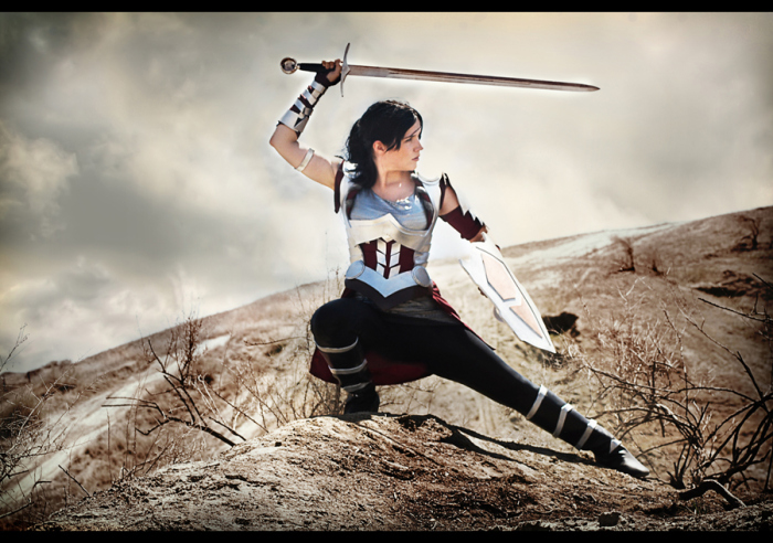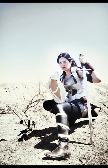 We took the photos in Kettleman Hills, California – the same place we took the Trigun photos. I think they turned out great, and I am super happy to be playing a warrior chick this time!! Not to mention… isn’t my husband a sexy beast?!?! ^_^