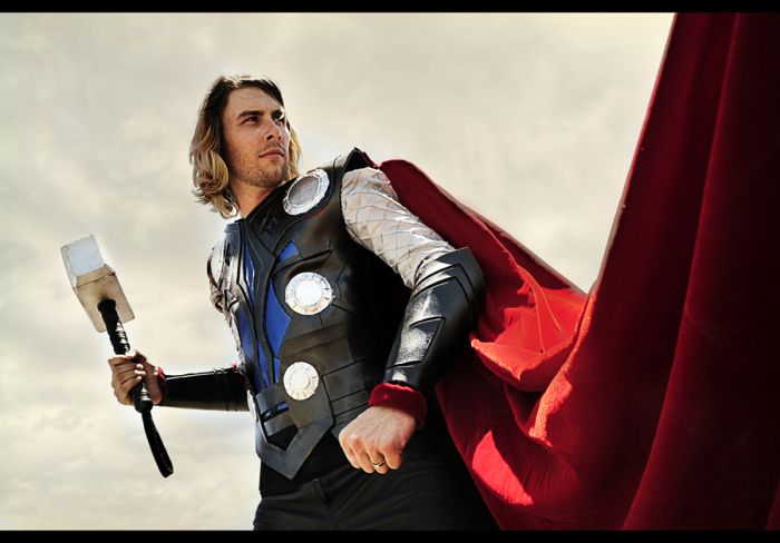 Jonathan got a big ol’ man crush on Thor when the movie came out, and so we knew we needed to do this cosplay for the midnight release of The Avengers in May of 2012!