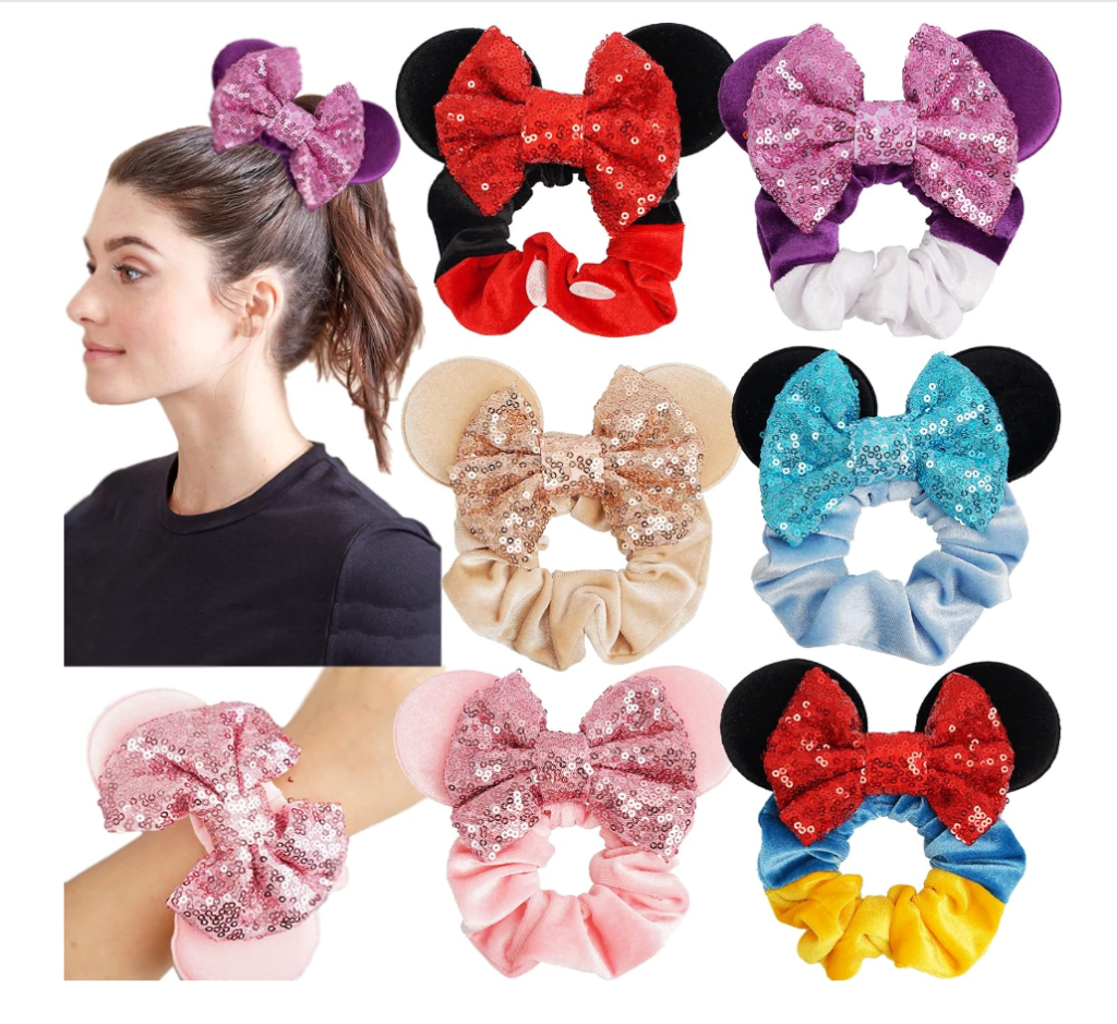 6 Pack Mouse Mickey Ears Velvet Sparkle Sequin Scrunchies – $12.99