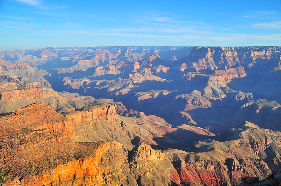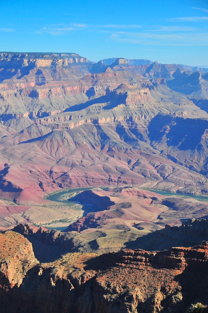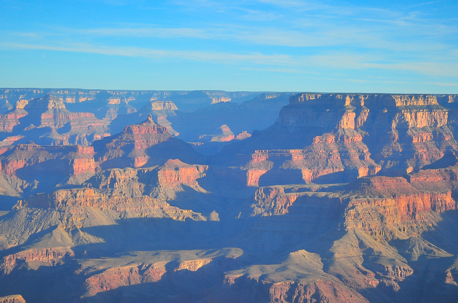 We were up at 3am to drive to the canyon, grab a vantage point and watch the sunrise. While Jonathan and I had both been to the canyon prior to meeting each other, we’ve concluded that this is THE way to see the Grand Canyon for the first time. We literally watched the canyon unveil. It’s gorgeous. At its widest point, the canyon stretches 18 miles across and is around 6000 feet deep, so in the dim light of the pre-dawn moon, you can only see the cliffs around you faintly – the gap across the canyon and the floor is pitch black. Then as the horizon lightened and the sun rose, the canyon was literally unveiled. It was unreal. It was like watching a literal painting in process.