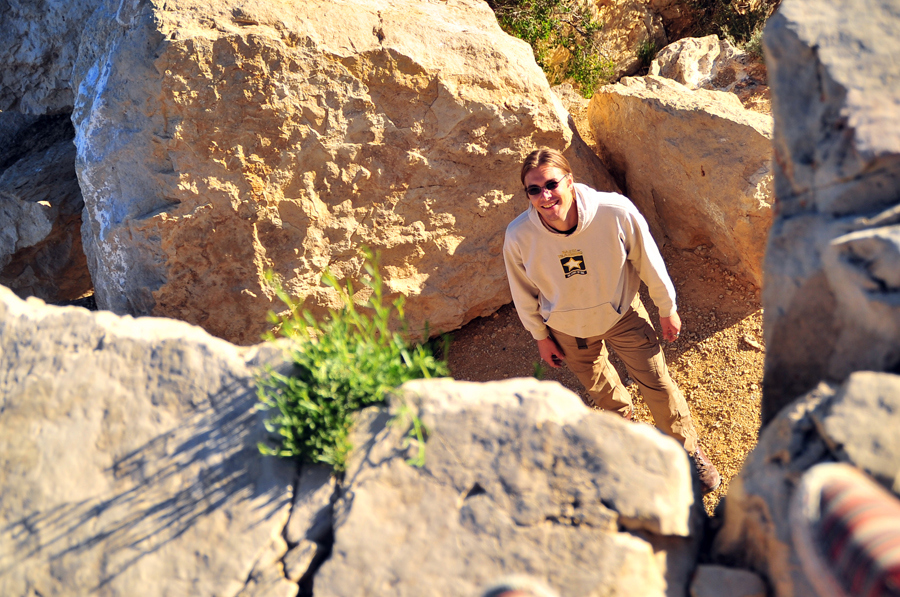 So, according to the Grand Canyon National Park Service, the only thing more dangerous than a person hiking the canyon alone, are two men in their 20s hiking together. The majority of people who die by falling over the edge of the canyon are men aged 20-40, and many of the deaths involve guys peeing off the edge. Guess what Jonathan and Nate both did? *sigh*