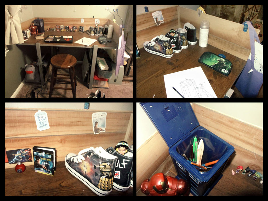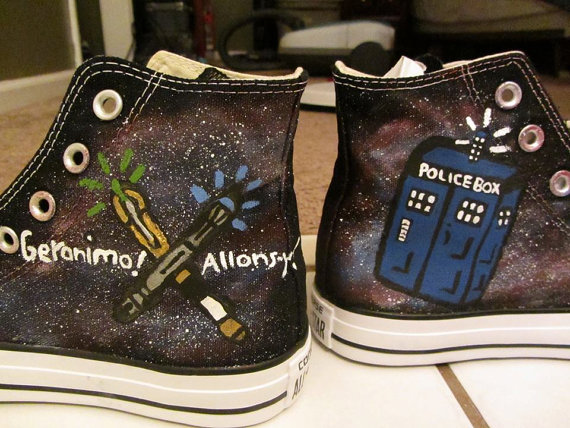 Doctor Who!!! My favorite moment in Doctor Who is probably the episode with number nine and “are you my mummy” When the Doctor says “Everybody lives, for once, everybody lives” It had such a happy ending. Your art work is wonderful, wish converse fit my feet, but alas…my foot is waaayyyy to narrow! Please check out our Etsy shop: Timetravelingties. Good luck with your student teaching and grad work..been there, done that, got the t-shirt. Then stayed home with my four children! Allons-Y