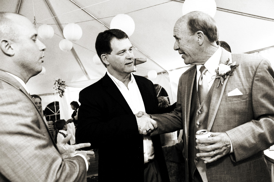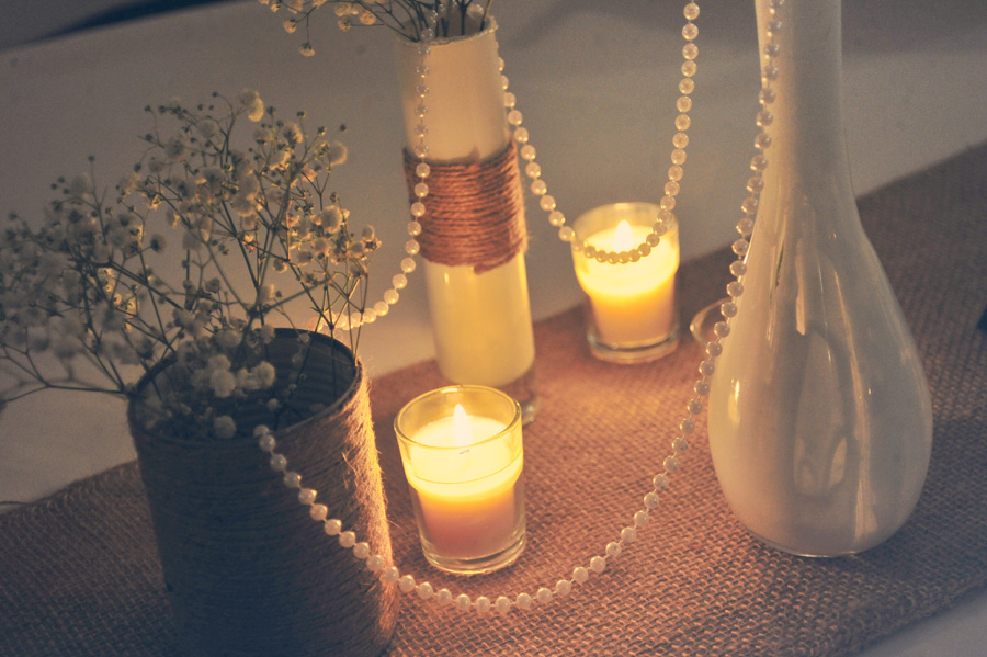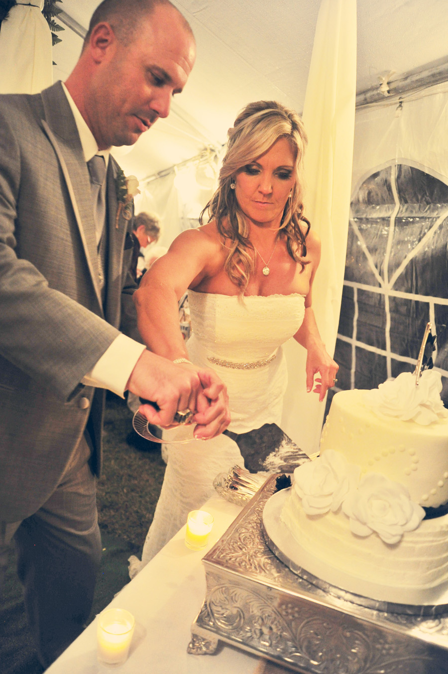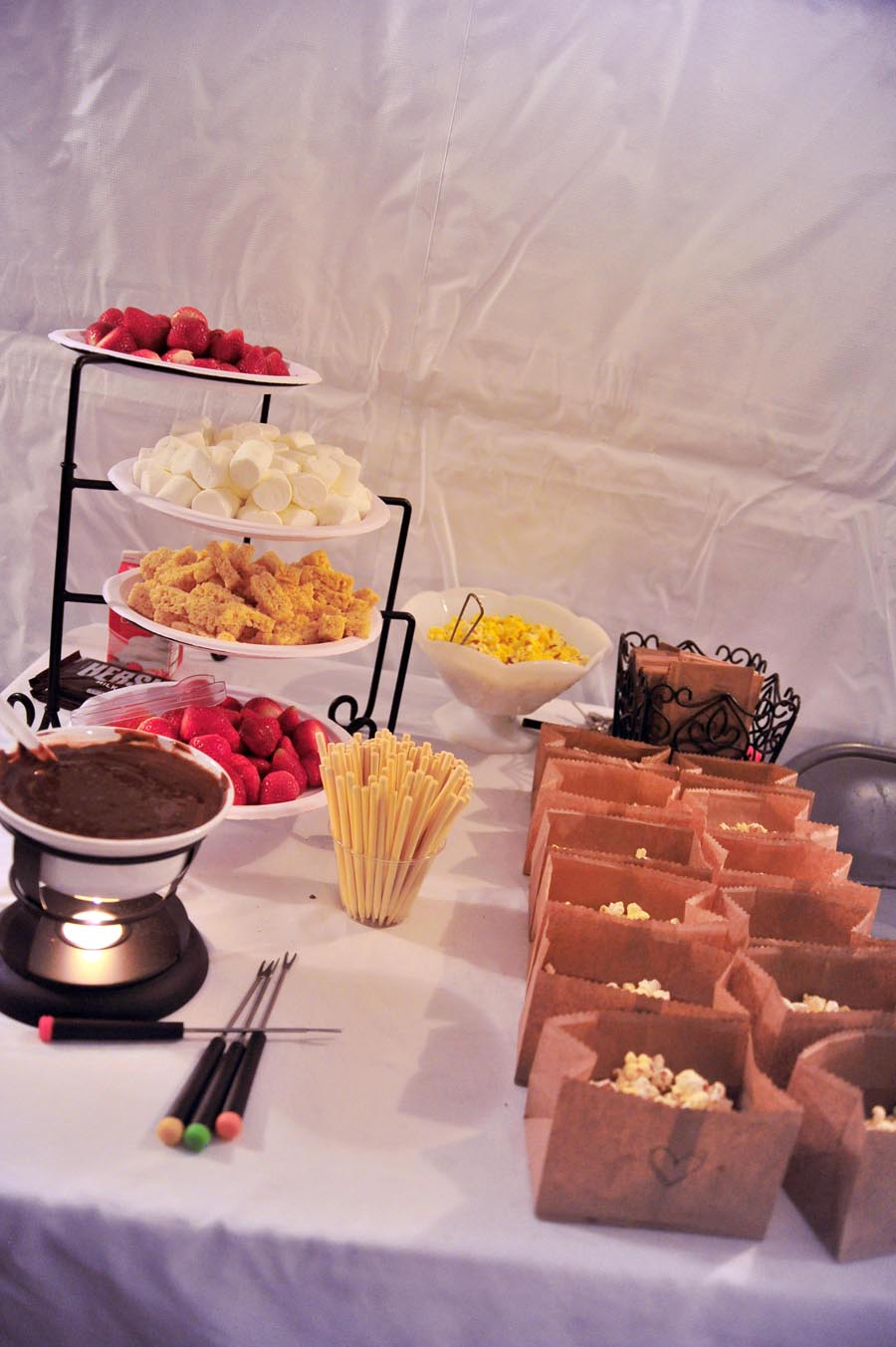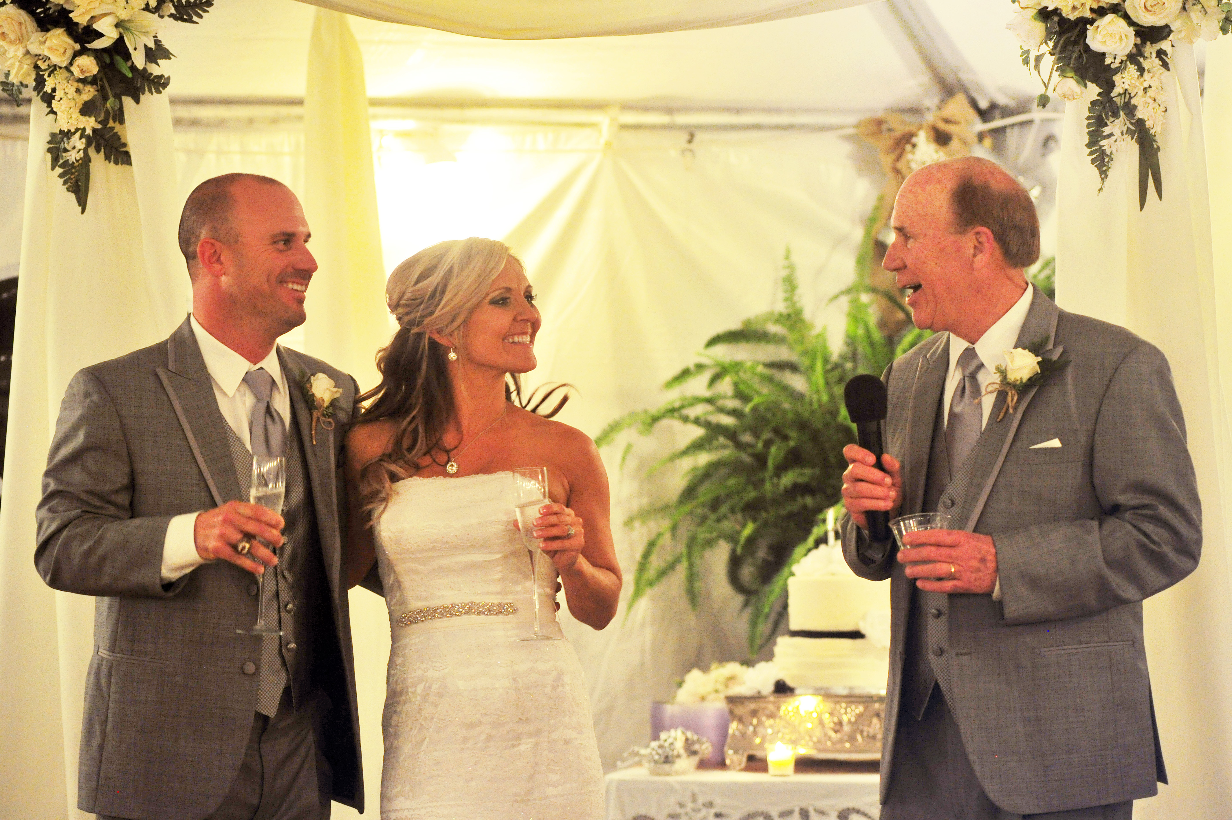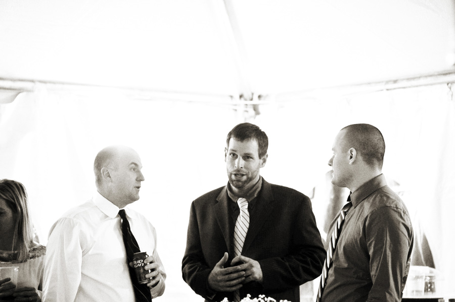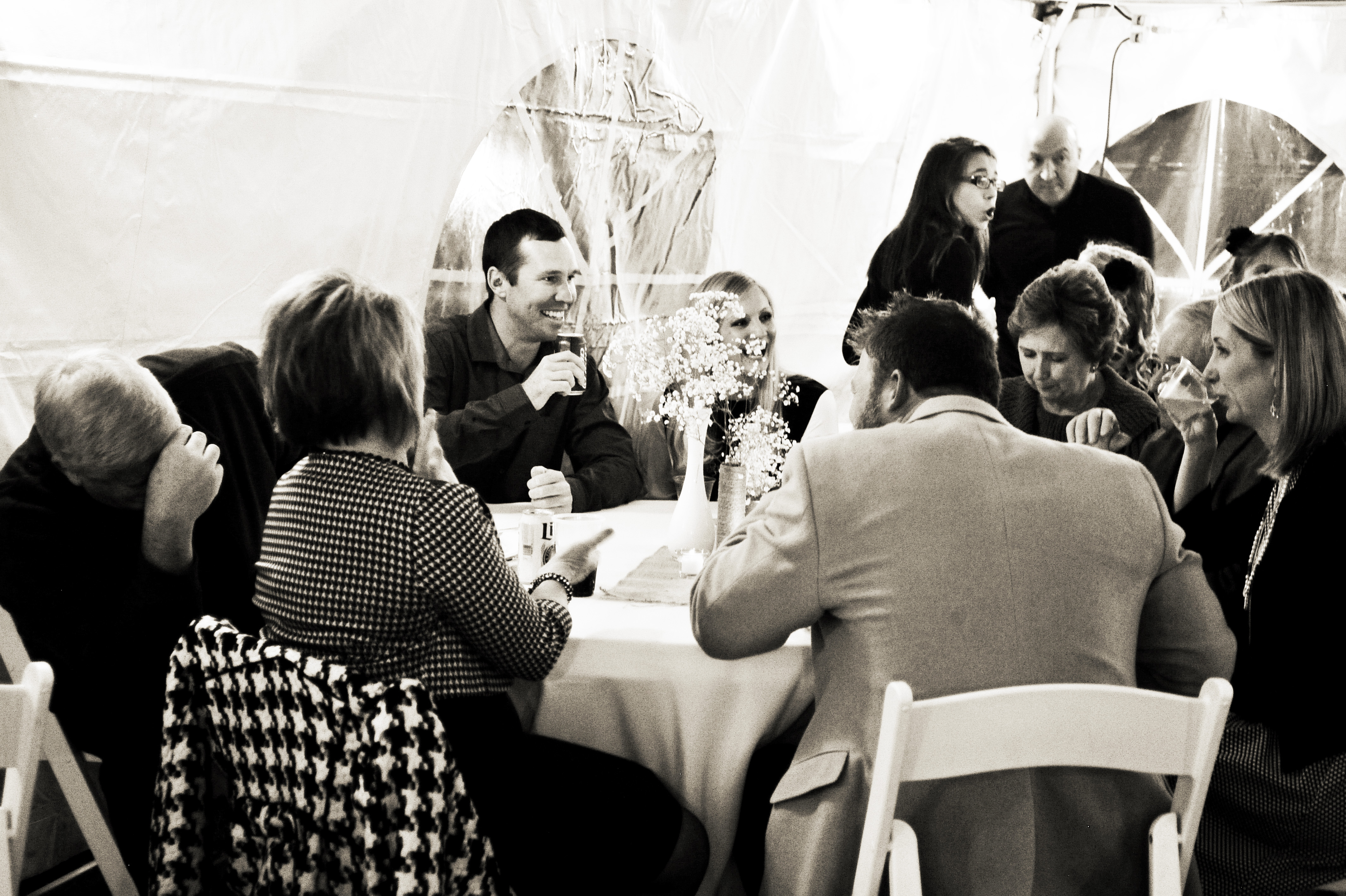 The tent was gorgeous, lit up with candles, lanterns and twinkle lights on the trees outside. I especially liked Kelly’s DIY centerpieces. So simple and elegant!