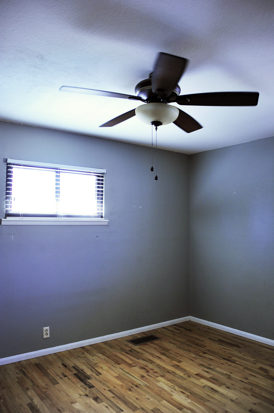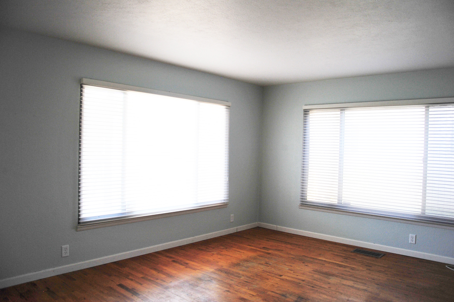 I am a sucker for natural light, and the whole front of the house is FILLED with it! We just love the large windows, airy shutters, cool colors contrasted with the original hardwood oak floors (which are desperately in need of some TLC), everything!
