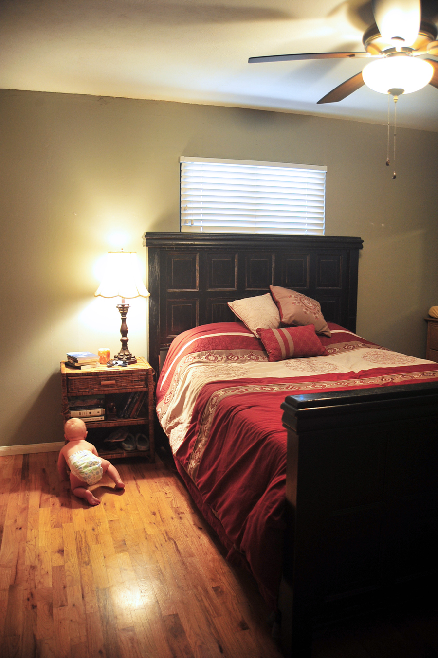 Aside from sealing the hardwood floors and deep cleaning, this room is pretty much occupied as-is. We have decided to keep the original paint color, and just need to touch it up here and there. I’m still in the process of sorting and organizing the closets, and the entire right side of the room is currently occupied by Tessa’s playpen and changing table and things, since we are still co-sleeping. So until my room is “my room” again I think I’ll hold off on anything more complex than a cozy bed, nightstand, and good books. ^_^