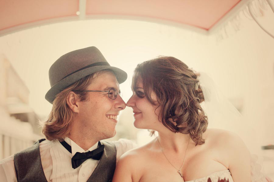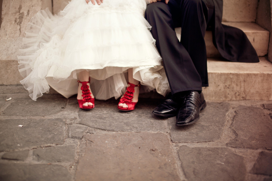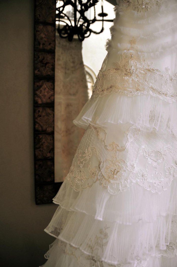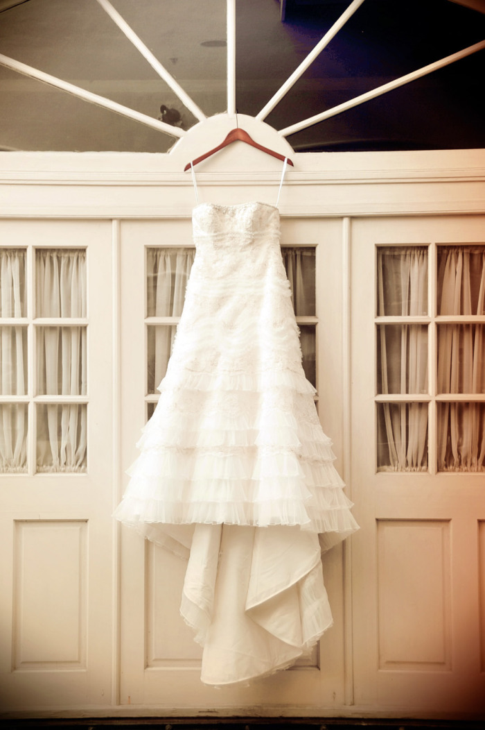Happy anniversary! You two look so happy together 🙂 And what a stunning dress, wow!