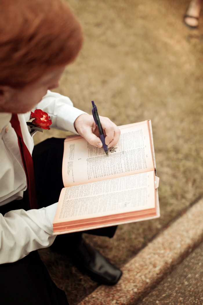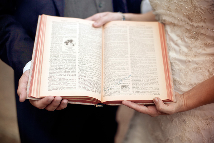 And as for the paper theme: Jonathan and I bought each other, as a mutual gift, a large hand-bound linen photo book with all of our wedding photos. The book is gorgeous and the craftsmanship of the book itself is a work of art – not to mention the photos inside, which feature a mix of the photos our wedding photographer took, and photos that Jonathan and I took on the weekend and day of our wedding.