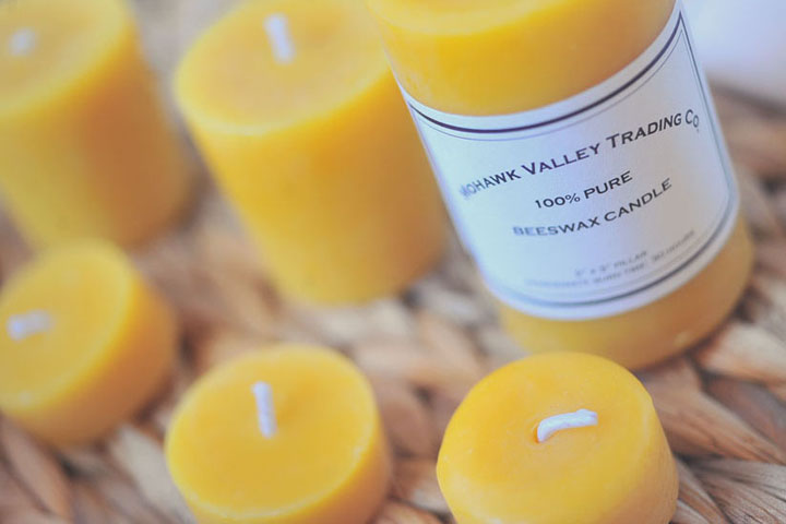 100% Pure Beeswax Candles from The Mohawk Valley Trading Company are hand dipped or hand poured and made from 100% all natural, unbleached yellow beeswax, produced by their bees in the USA.