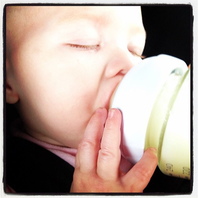Late September 2013 – Nursing Tessa with donor milk and the Lact-Aid Nurser.