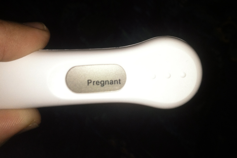 As I headed in to the bathroom to take the ClearBlue test, some friends arrived to get ready for the Halloween party we were all headed to in a few hours. Not in the mood to sneak around, I announced, “Hey, I gotta take a pregnancy test, brb.” I didn’t want my hubby waiting out with the friends in the living room, so I pulled him in the bathroom with me.