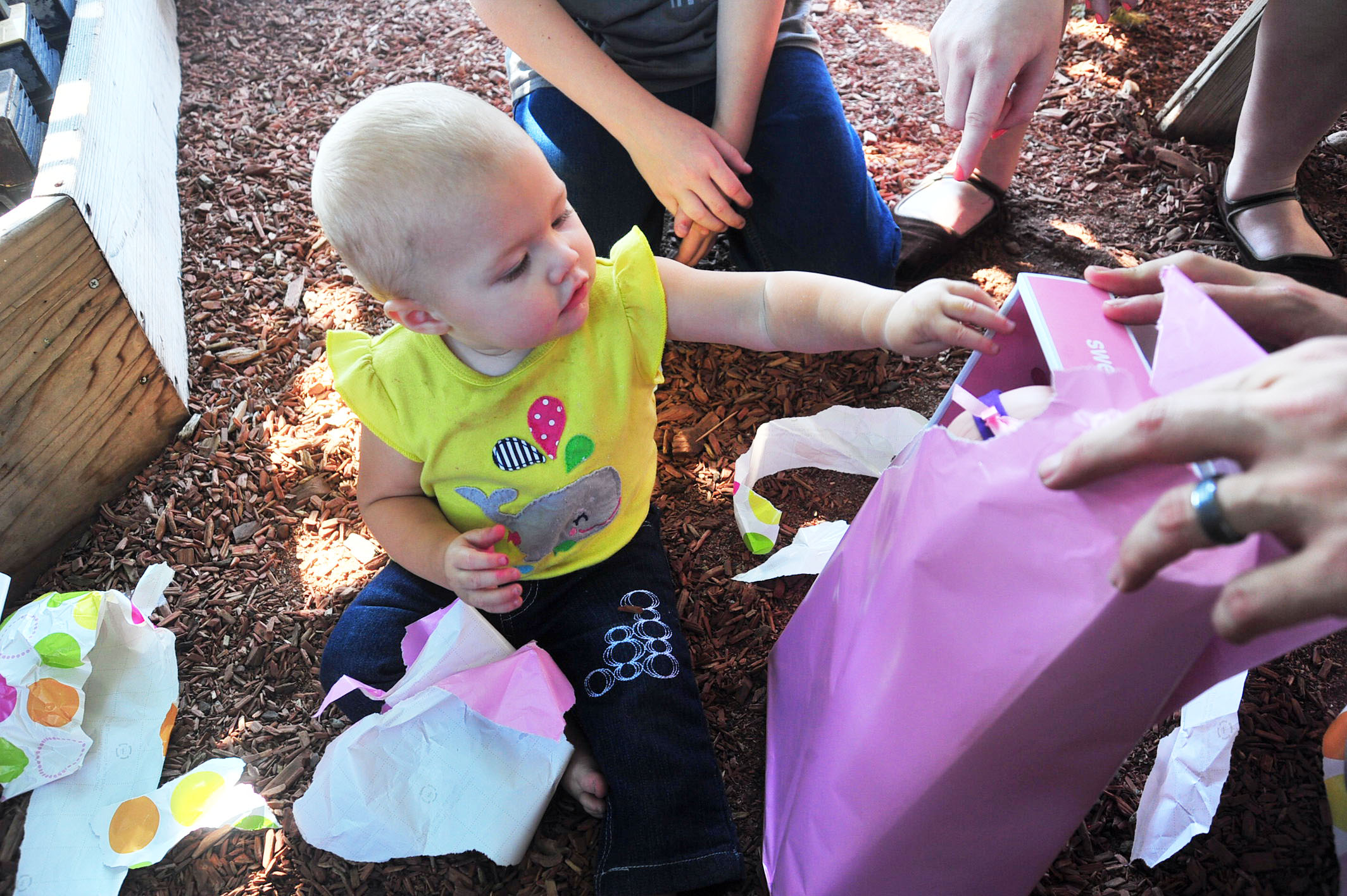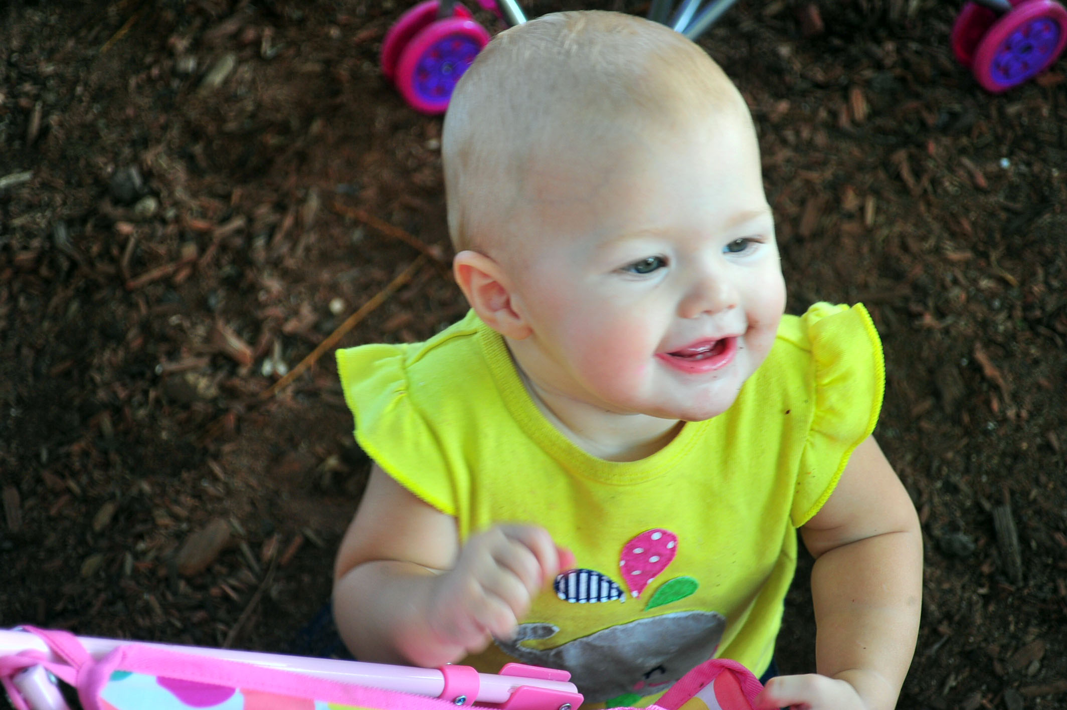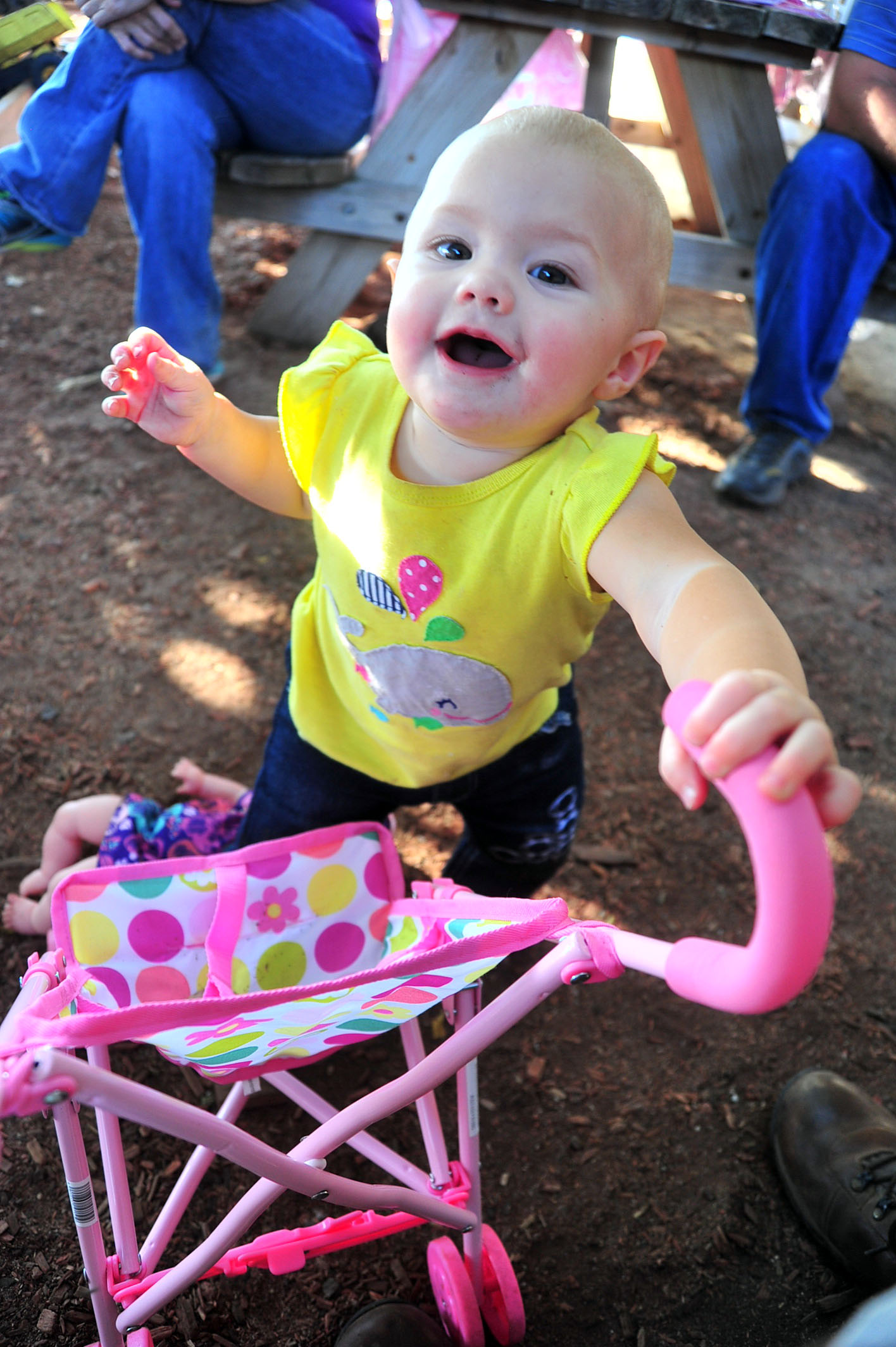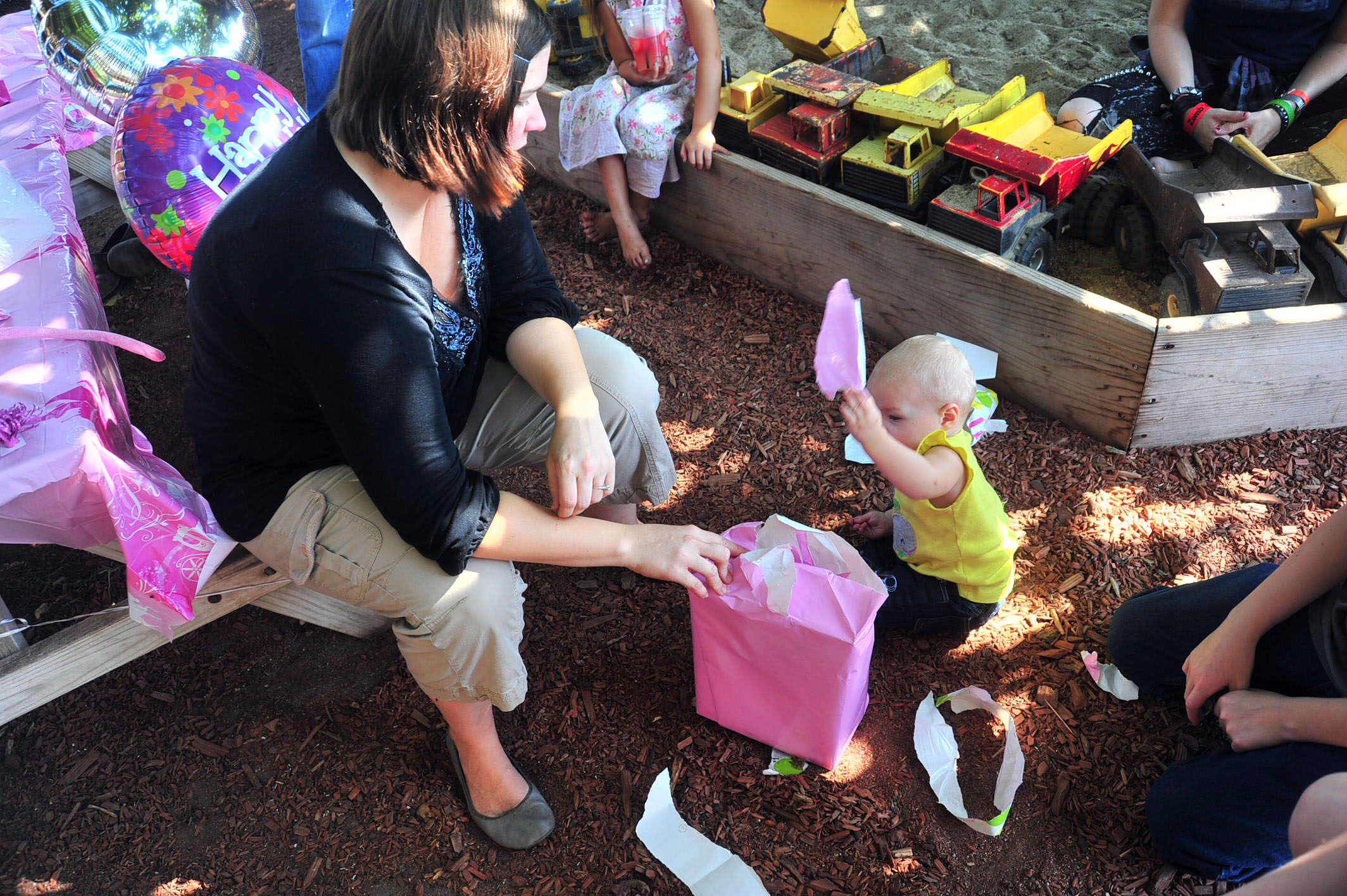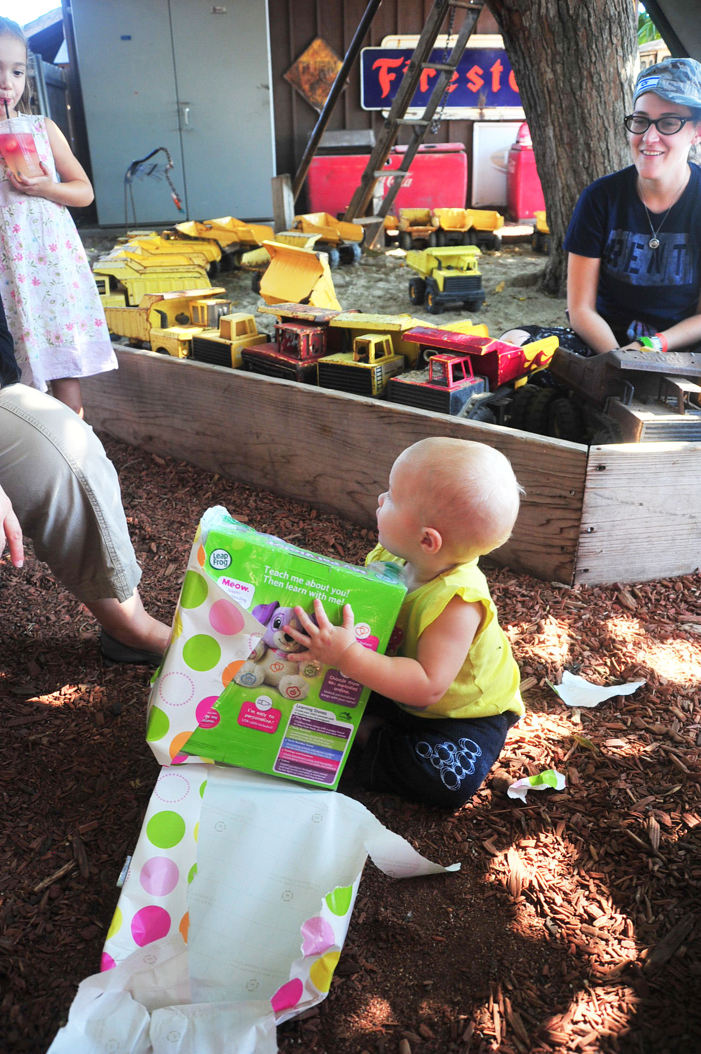 We had a fun, leisure day with friends, and Tessa had a blast opening her presents (she got the concept of unwrapping the presents right away) and rolling her stroller around with her new baby dolls. (She did NOT, however, get the concept of the smash cake.. cleanest cake eating one year old on the planet.)