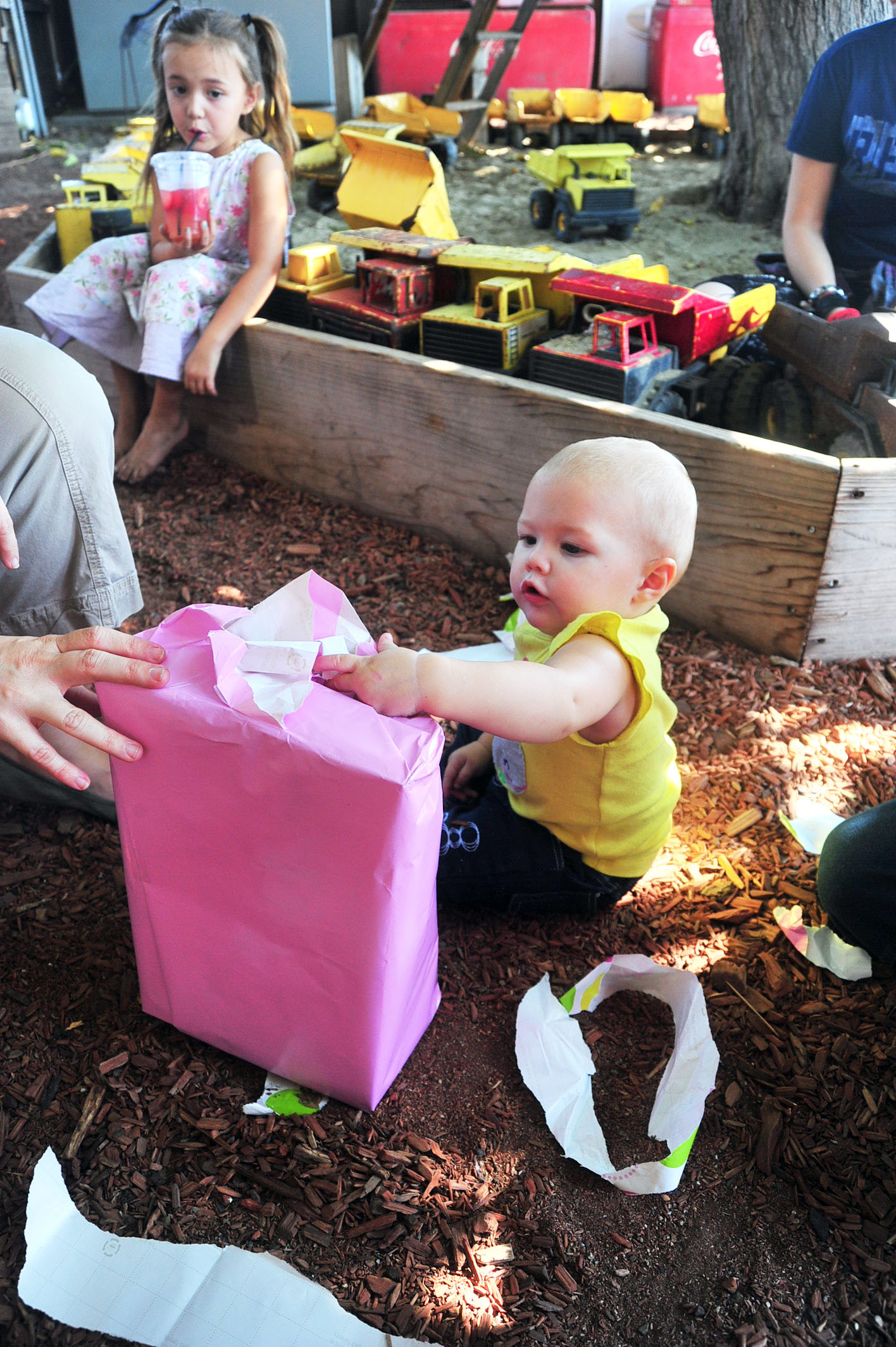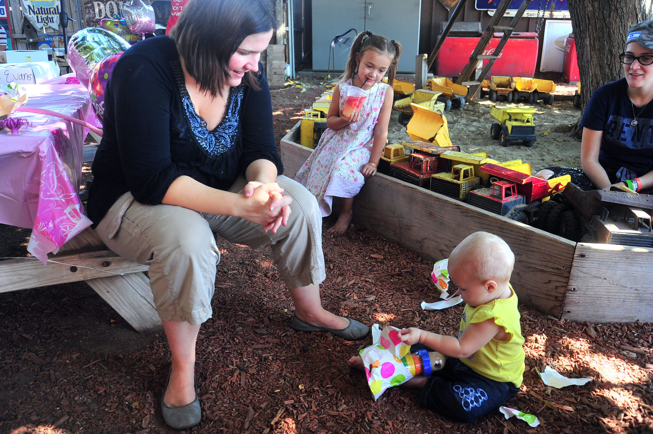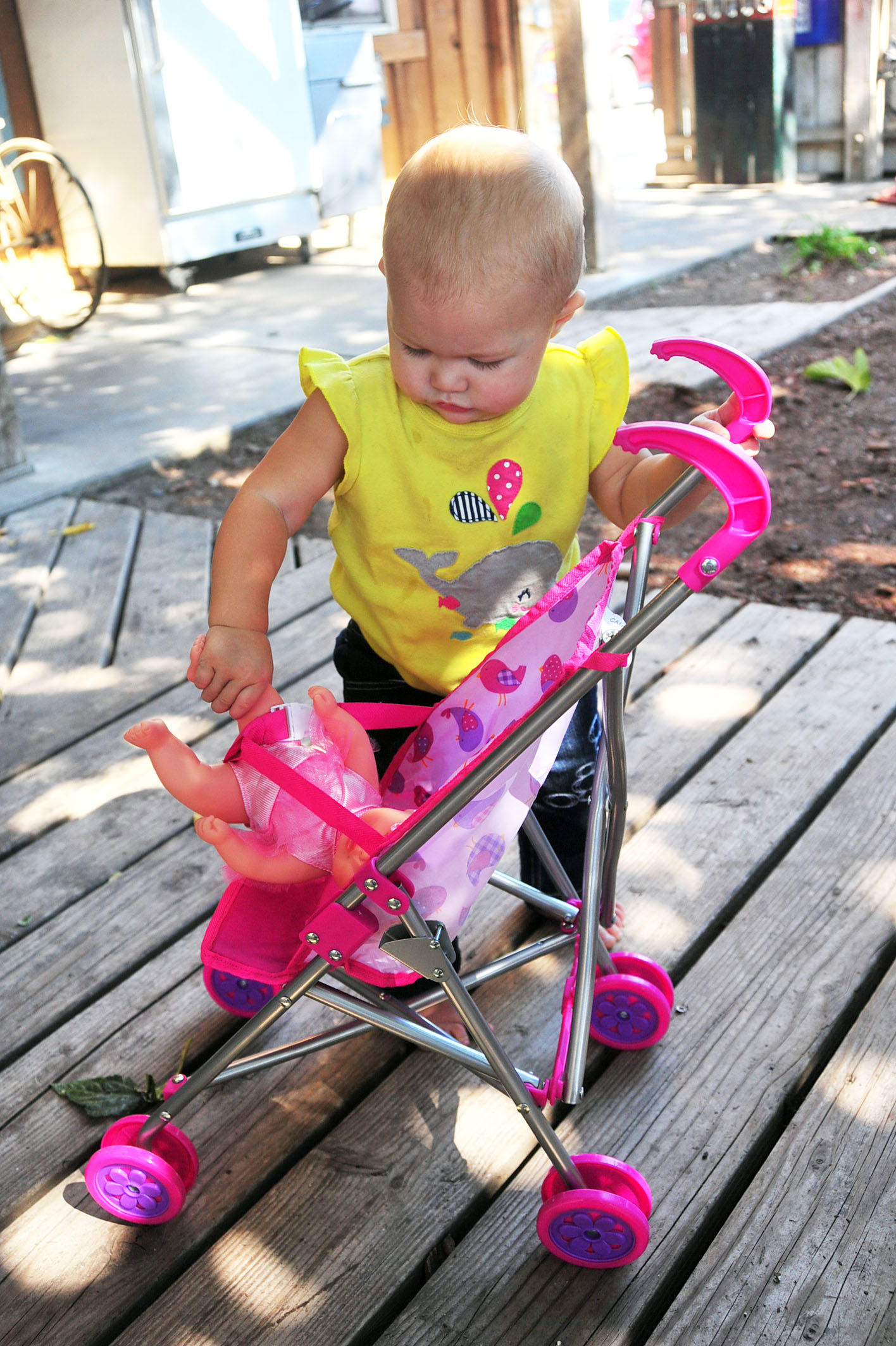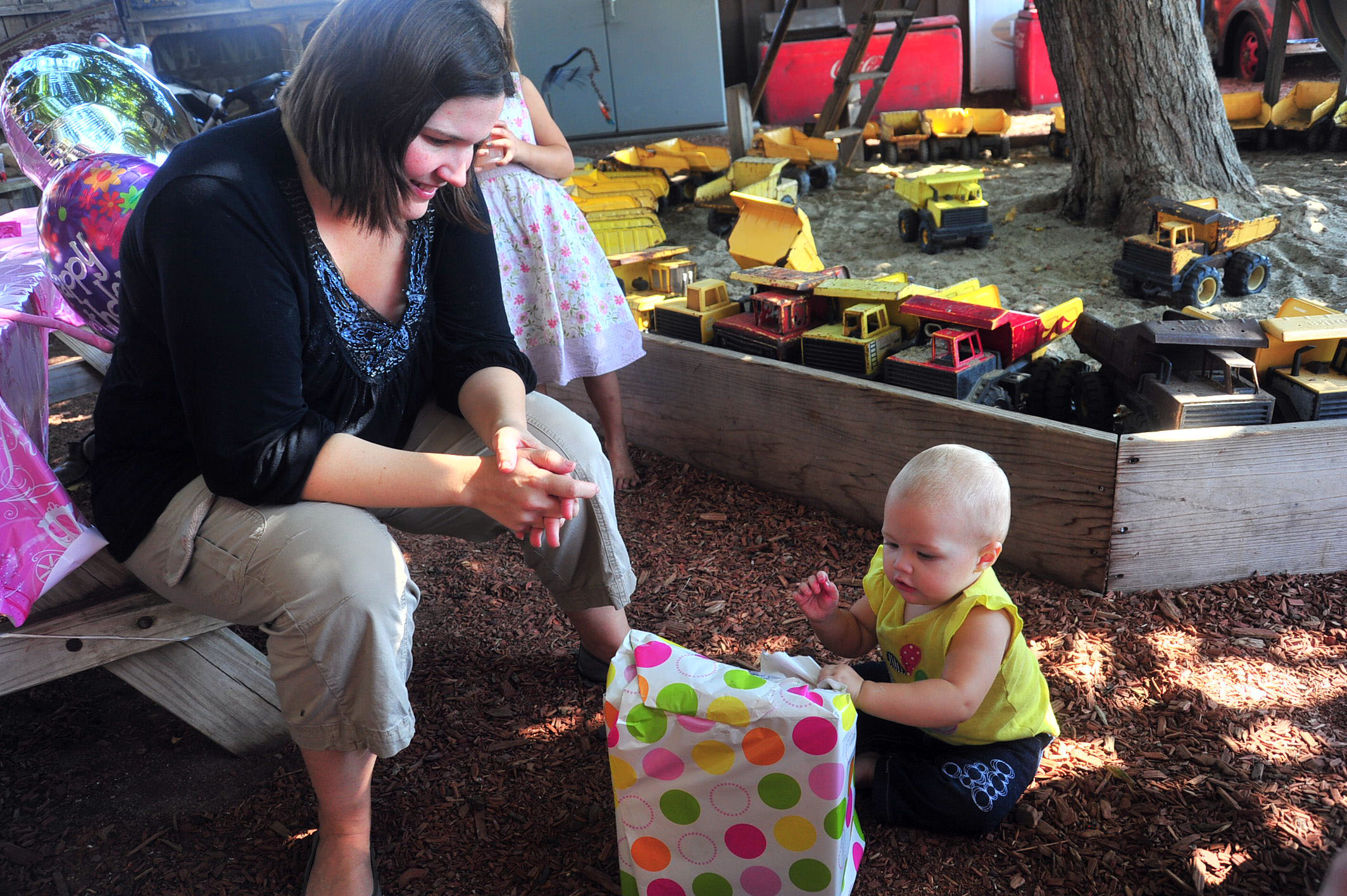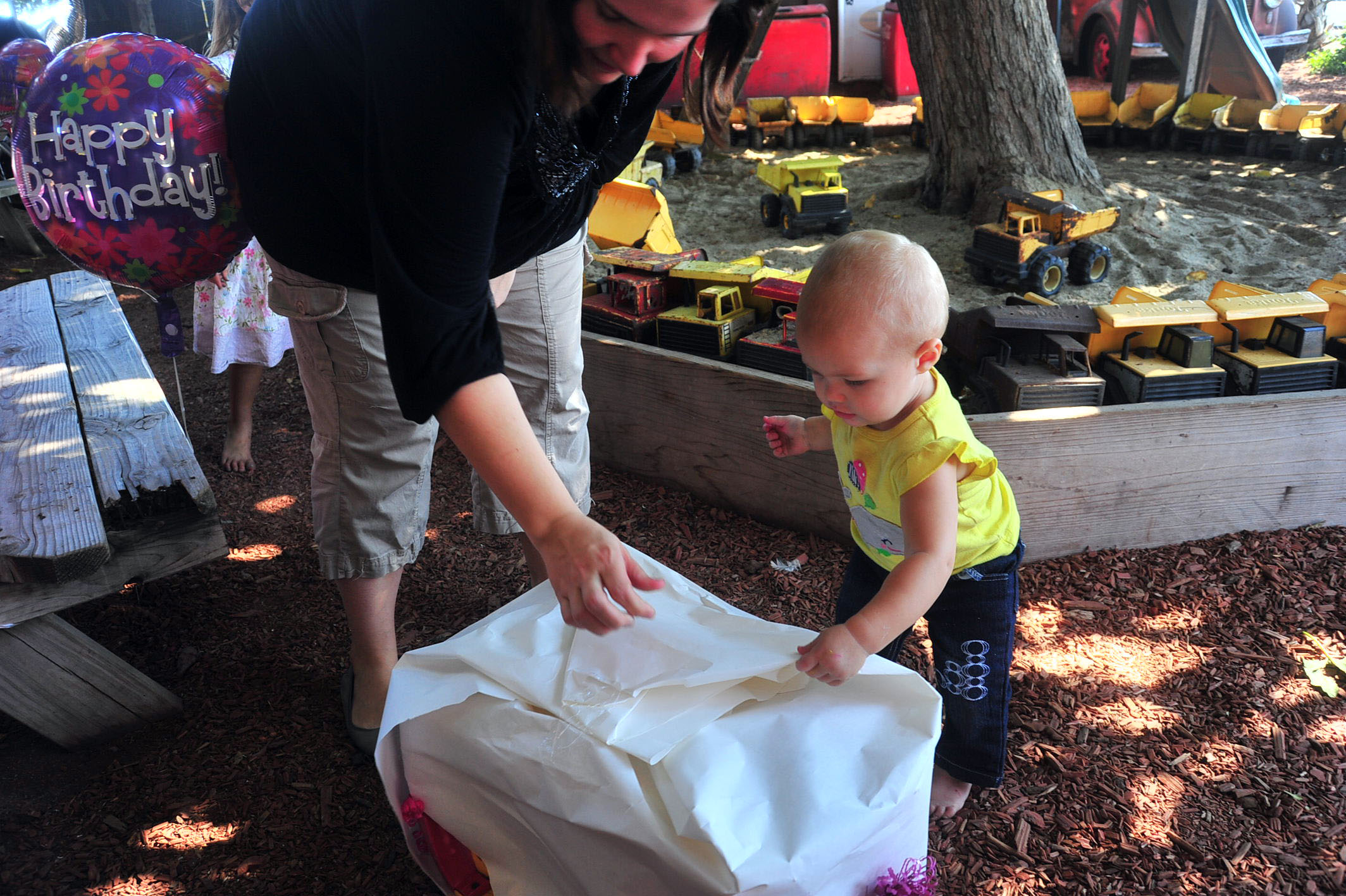 We had a fun, leisure day with friends, and Tessa had a blast opening her presents (she got the concept of unwrapping the presents right away) and rolling her stroller around with her new baby dolls. (She did NOT, however, get the concept of the smash cake.. cleanest cake eating one year old on the planet.)