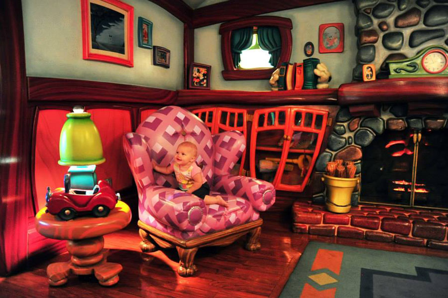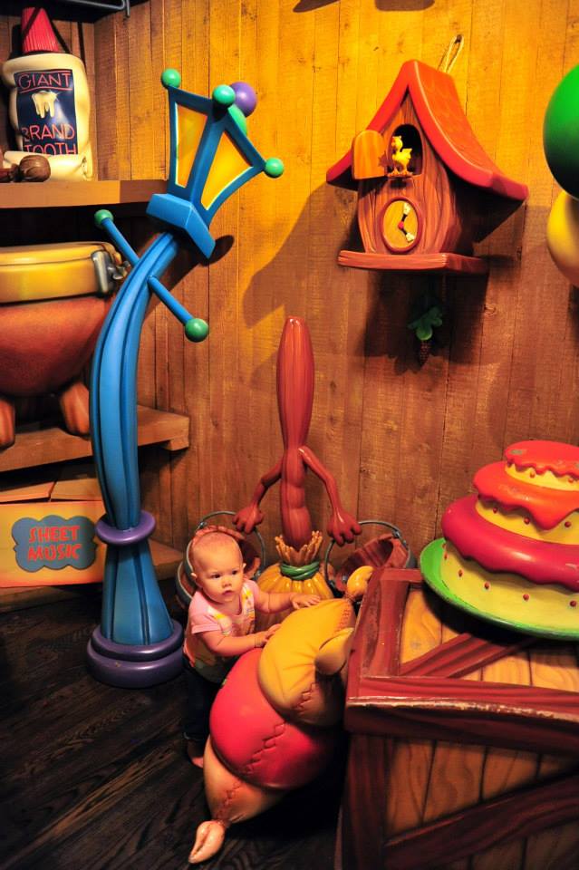 Tessa had an absolute blast meeting Mickey. I didn’t want to be one of those shoving little kids aside to get a clear shot with Mickey moms, so I knew we had to be all civil-like and call on Mickey in his home, like decent adults. So off to Toon Town we went, meandering through Mickey’s house to meet the Mouse himself. Tessa loved all the sights and sounds and cartoony mayhem, and when it came time to meet Mickey, she was entranced! Lots of staring, and reaching, and not wanting to leave!