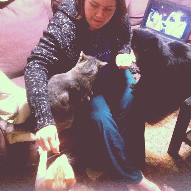 “I love you. I love you. Love me. I love you!” – My cats whenever the food bowl is 3/4 empty.