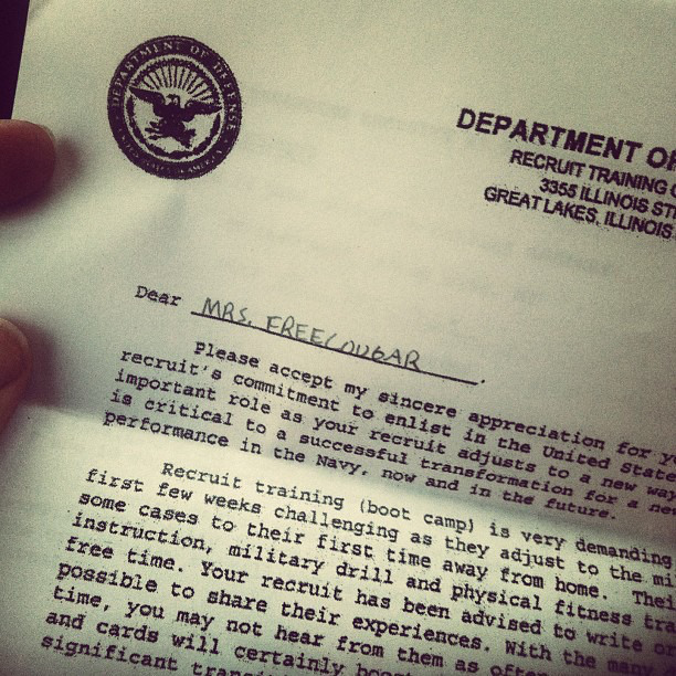 While it has been a hard month without my hubby by my side, it has been a time of growth and achievement for the both of us. I’ve kept busy with crafts, spending time with friends, growing a baby and planning for the future. And Jonathan has been busy transforming into a muscley sailor man in preparation for serving our country! Since he left on June 4 I have not received a single letter from him, and have had a total of 23 minutes on the phone with him. This is NOT the norm with Boot Camp, most wives have received three to four 30-40 minute calls, and about two weeks worth of letters at this point. Jonathan is in an unusually silent ship and division, which sucks for me. It’s been hard, but as the days march steadily on and bring me closer and closer to his graduation – and the ensuing whirlwind of life changes and activity THAT will bring – it’s been getting rather exciting!